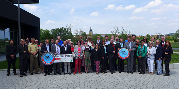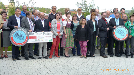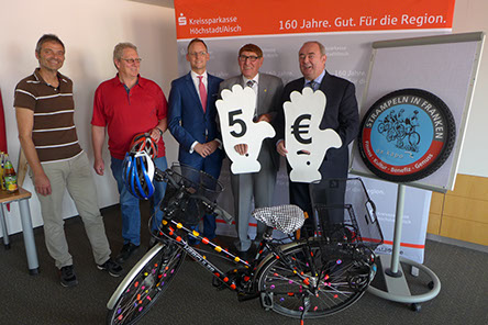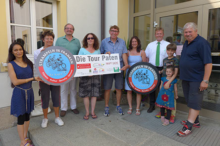Zum 3. Mal macht Strampeln-in-Franken in Höchstadt Station: v.l.n.r. Laufer Mühle-Einrichtungsleiter Michael Thiem, Höchstadt`s 2. Bgm. Schulz,