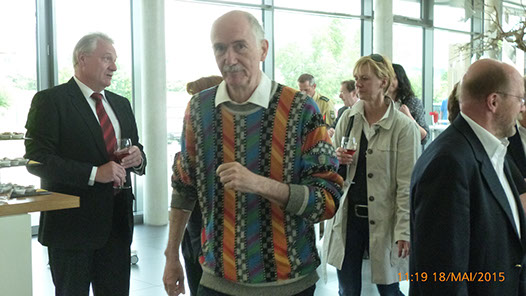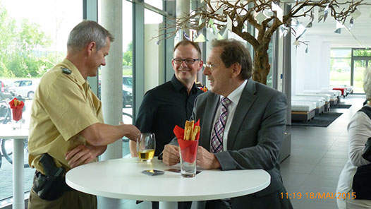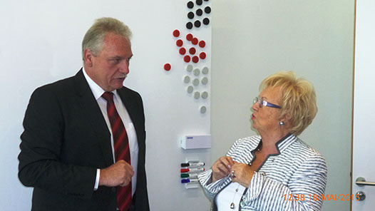 Bürgermeister Meier im Gespräch mit Senior-Firmenchefin, Frau Richter