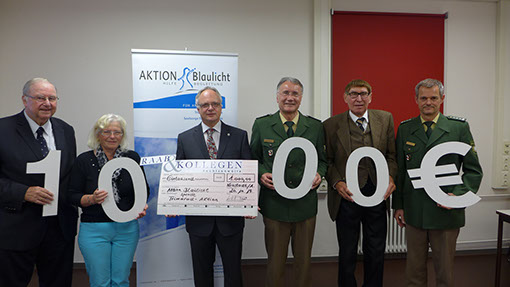 Von links nach rechts. Die 3. Preisträgerin Erika Schwalme aus NEA; RA Hans Raab, seine Ehefrau Erika; Blaulicht-Repräsentant Gerhard Werner;