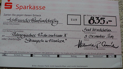 Symbolische Spendenpräsentation im Sonderpädagogischen Förderzentrum II