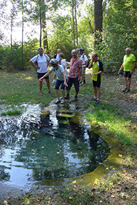 Erste Station der Tour – die Aischgrundquelle - bei Burgbernheim; leider mussten die Räder über die B 13 getragen werden; es gibt immer noch keinen Radweg!!!